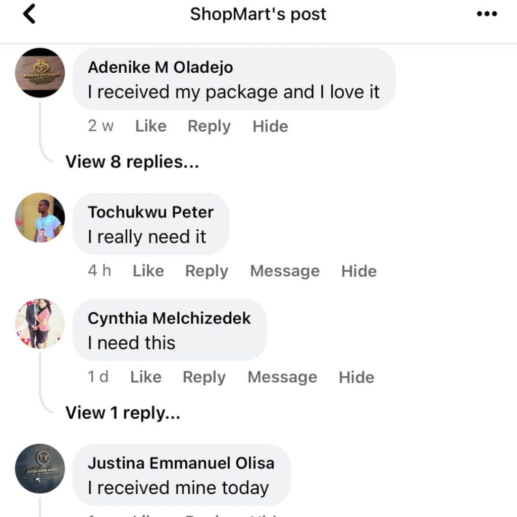 We’ll send your product to your doorstep. We offer payment on delivery (cash/transfer).