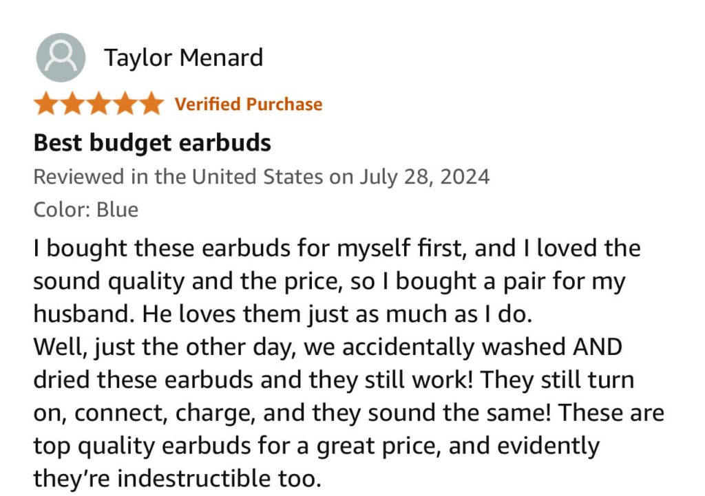 “I was amazed at how durable these Pro-Tech earbuds are.The magnetic cover is a great feature. It’s so easy to open and close without any hassle. Plus, the sound quality is fantastic. I’ve used them in the rain and during workouts, and they’re still going strong. Definitely worth the purchase!”