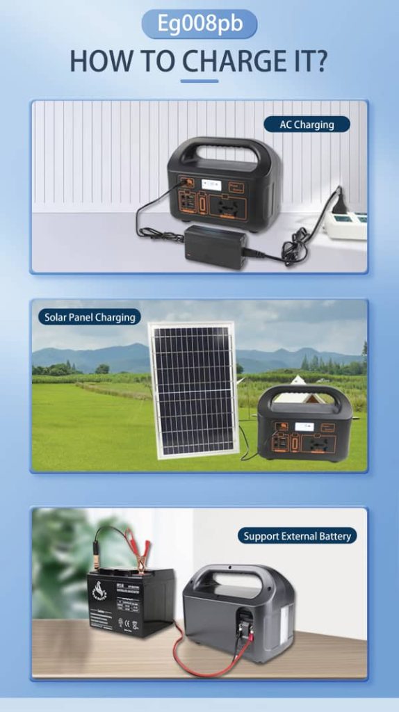 No, it’s not just the solar panel. You can charge the Portable Power Station in multiple ways. Besides using the solar panel, you can also recharge it through a regular wall socket using the included charging cable. Plus, if you have a car, you can charge it while on the go using the car charger. And here’s the best part: you can even connect it to an external battery, so you’ll still have power at night, even if there’s no sun. So whether you’re at home, in your car, or out in the sun, you have different options to keep it powered up!